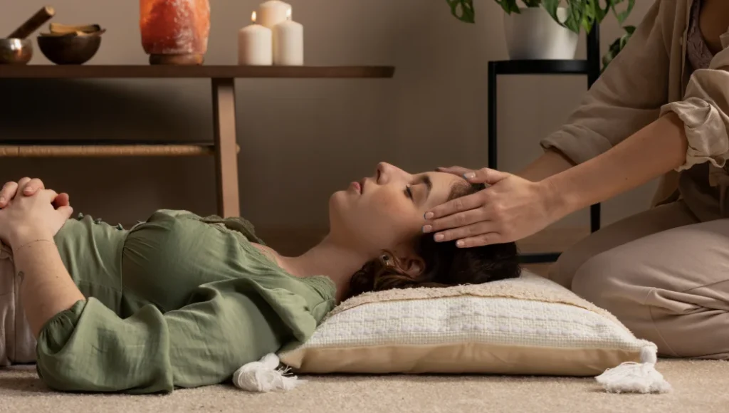 Reiki is a gentle, hands-on energy healing practice that promotes relaxation, reduces stress, and helps balance the body’s energy. It supports physical, emotional, mental, and spiritual well-being by clearing energy blockages, restoring harmony, and encouraging natural healing processes.
